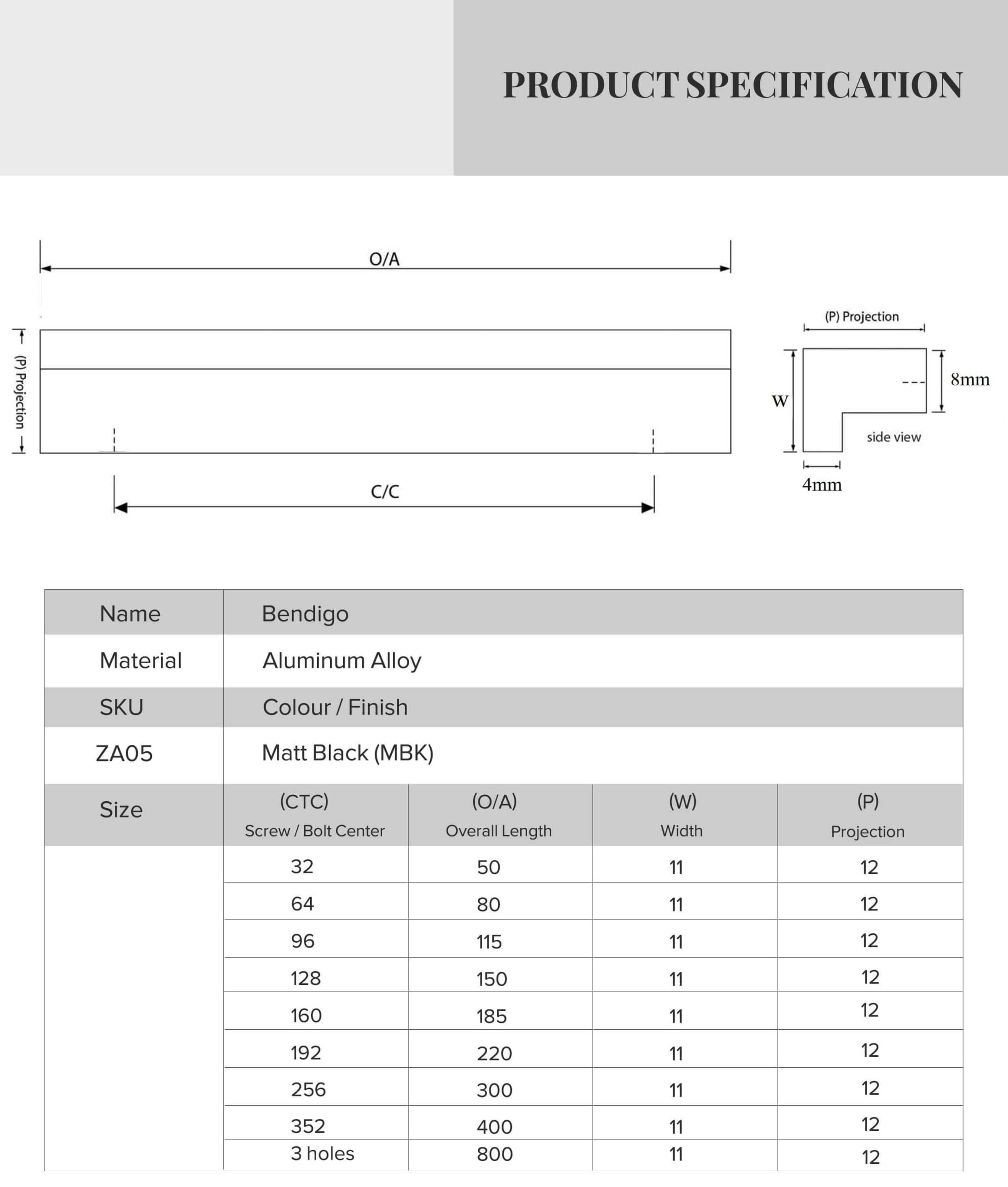 | Distance between center | 32mm, 64mm, 96mm, 128mm, 160mm, 192mm, 224mm, 256mm, 288mm, 352mm, 416mm, 448mm, 512mm, 700mm |
