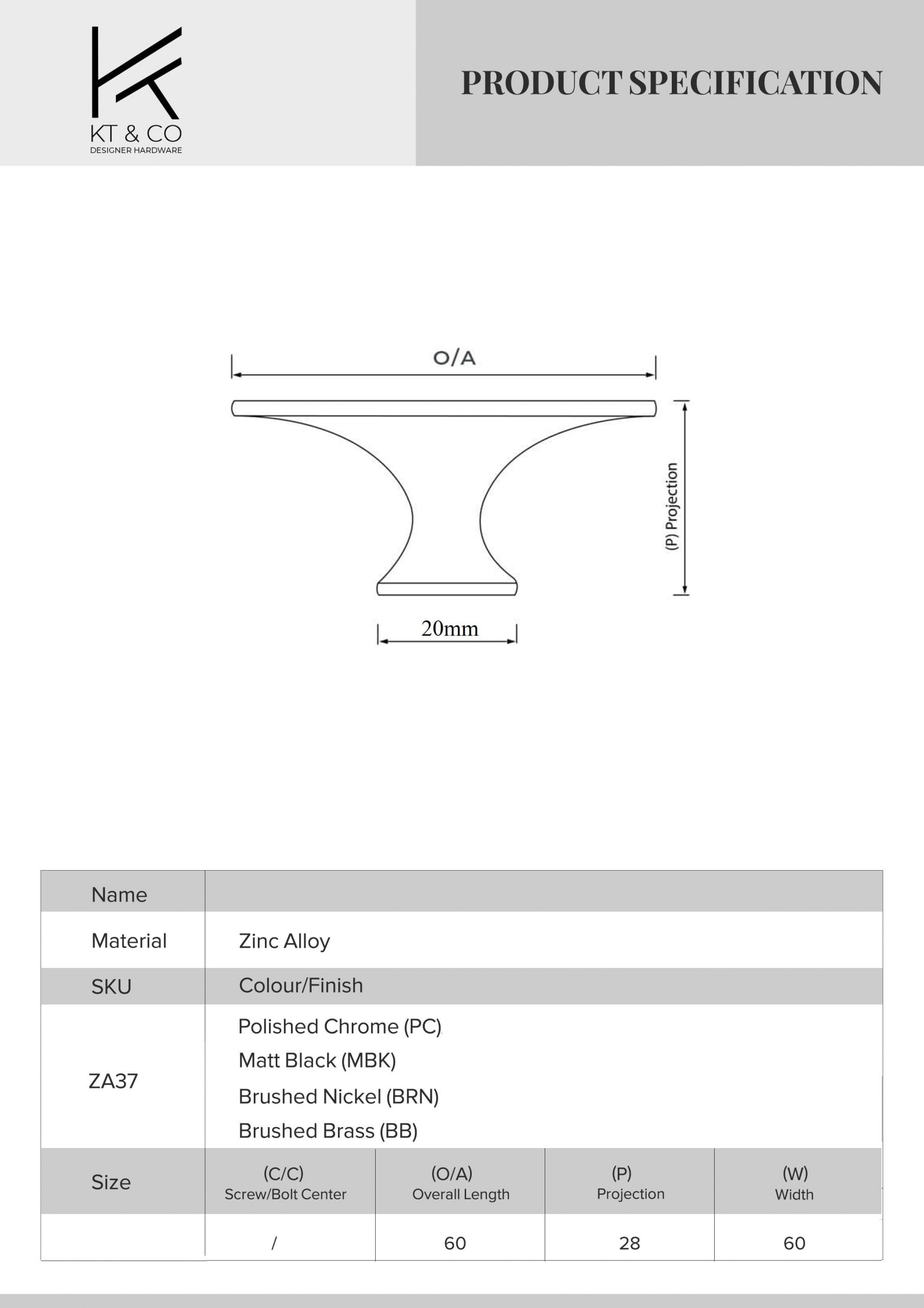 | Colour | Black, Brass, Chrome, Nickel |