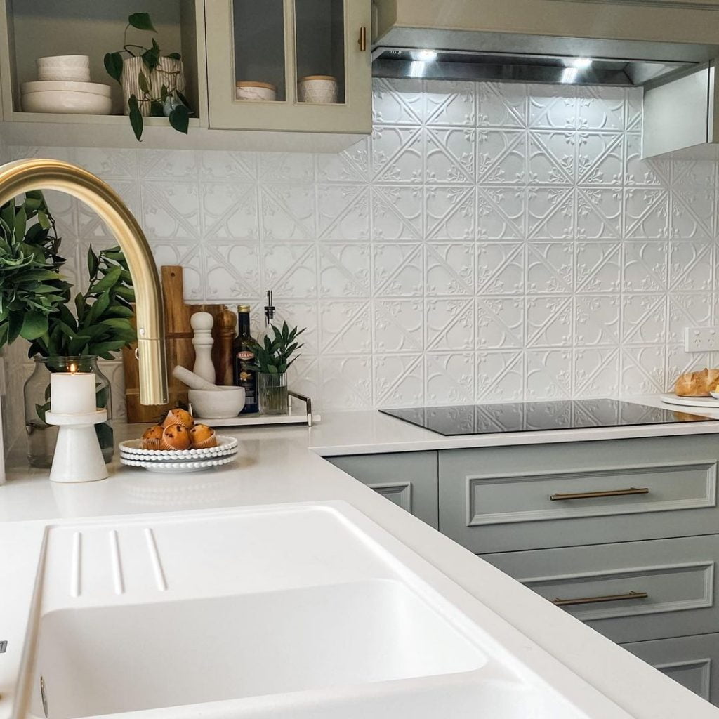 Words can’t describe how proud I am of all the blood sweat and tears that we have been through to get here… A huge shoutout to my hubby who has sanded, painted, corked a million times over, pulled the kitchen apart and put it back together, plastered, installed the splashback & range hood, and everything else to get our kitchen looking like it does! So so proud & so happy with how our budget makeover kitchen looks!