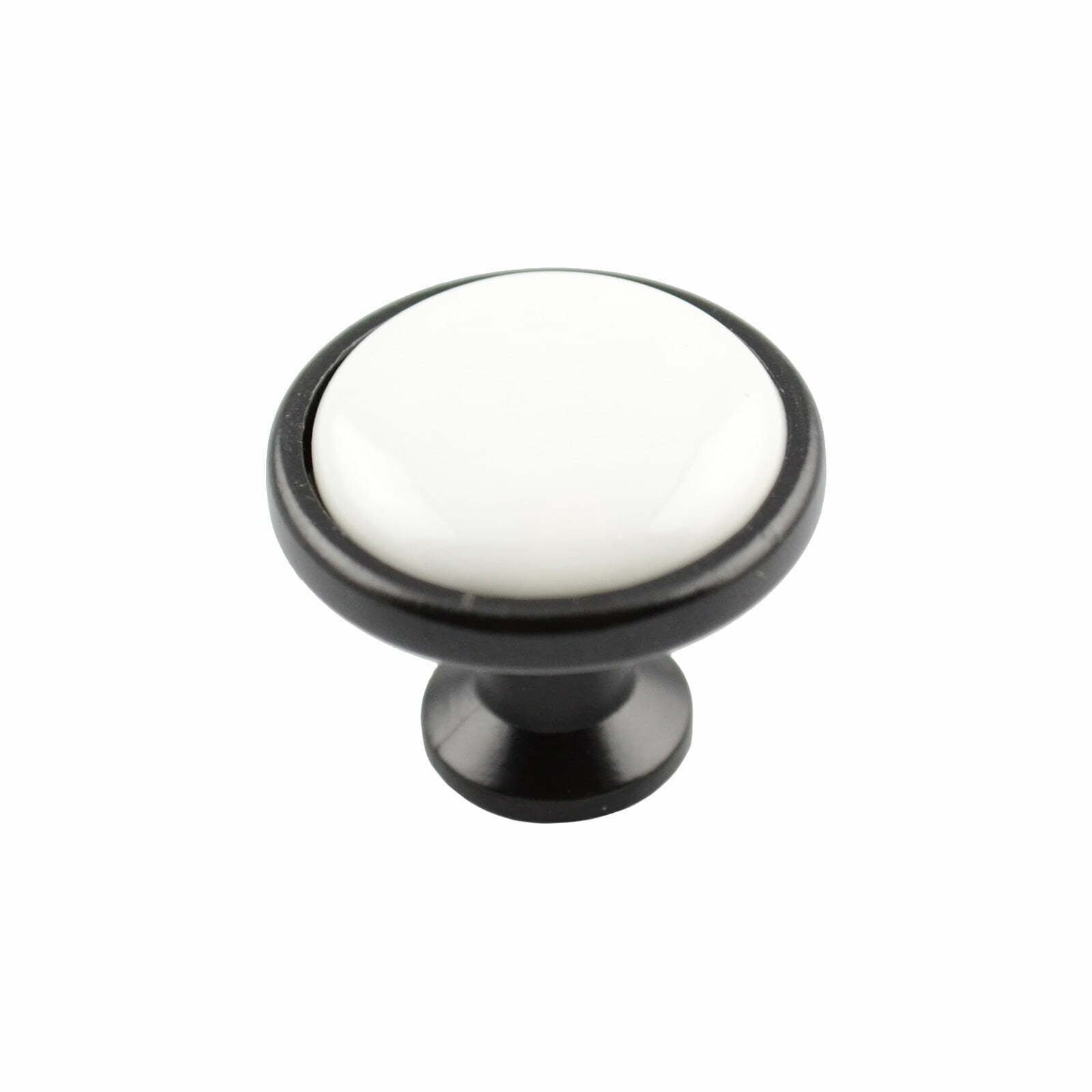 Kitchen cabinet knobs round black white porcelain 32mm